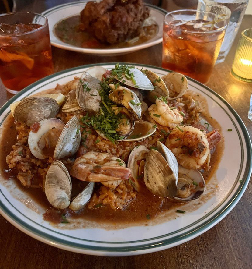 From the moment you step through the doors, you’re welcomed by warm lighting, vintage French decor, and the soft hum of classic jazz, creating an atmosphere that feels both luxurious and inviting. Chez Lafayette masterfully captures the essence of Creole heritage, offering a setting that is perfect for intimate dinners, family gatherings, or weekend celebrations with friends.